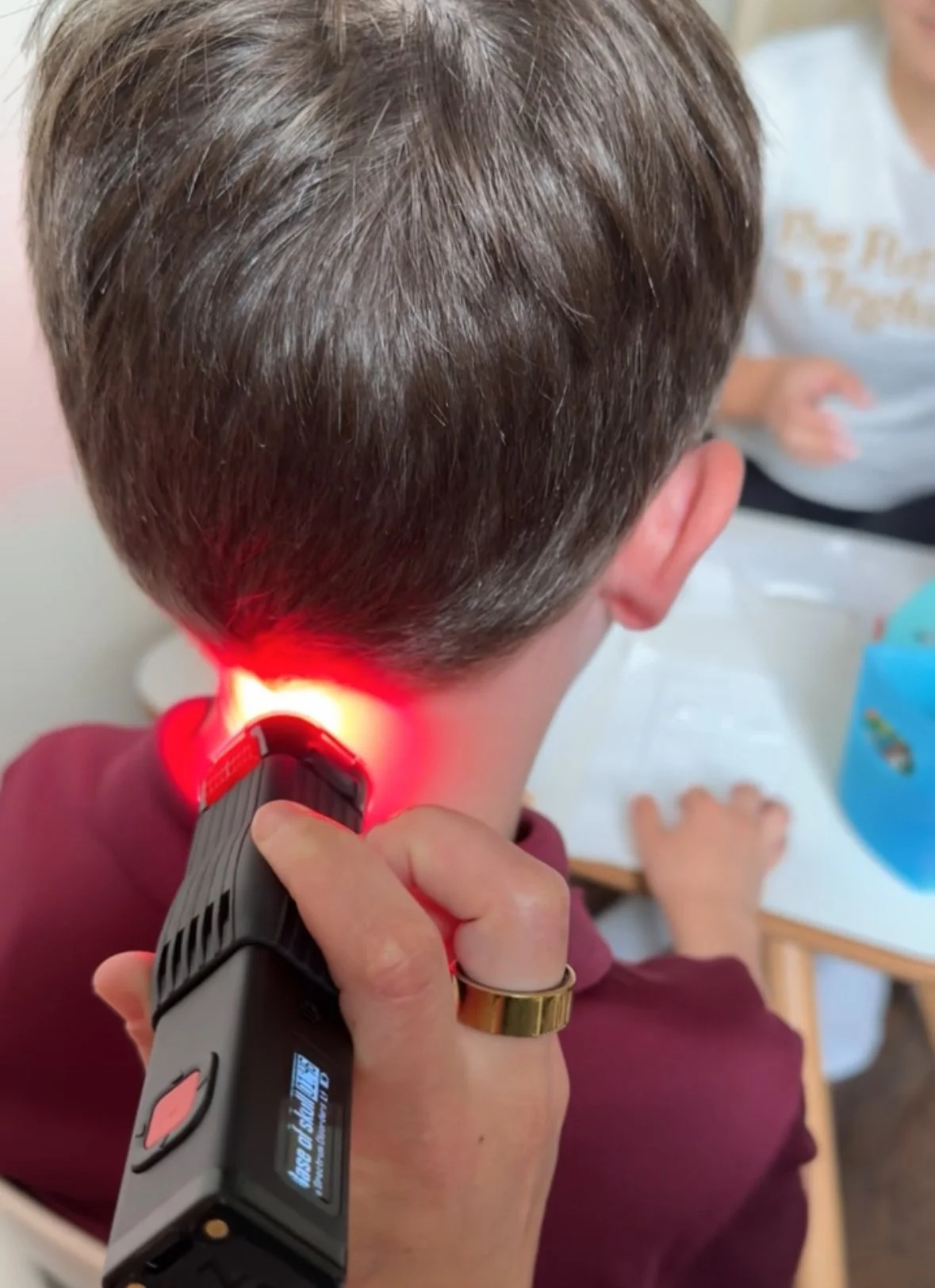 Gentle, safe low-level light therapy (LLLT) — supporting healing, improving muscle function, and helping regulate the nervous system for better focus, feeding, and sleep.